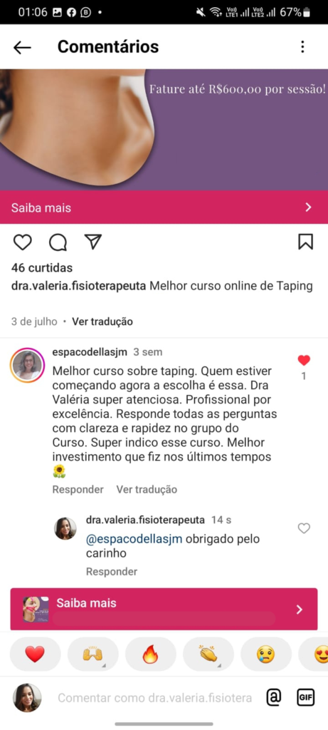 Esses alunos que em comentários do Instagram atestaram os resultados em seus pacientes.