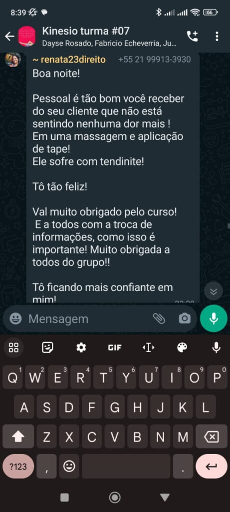 Essa outra aluna que conseguiu acabar com as dores de tendinite de seu cliente utilizando o taping.