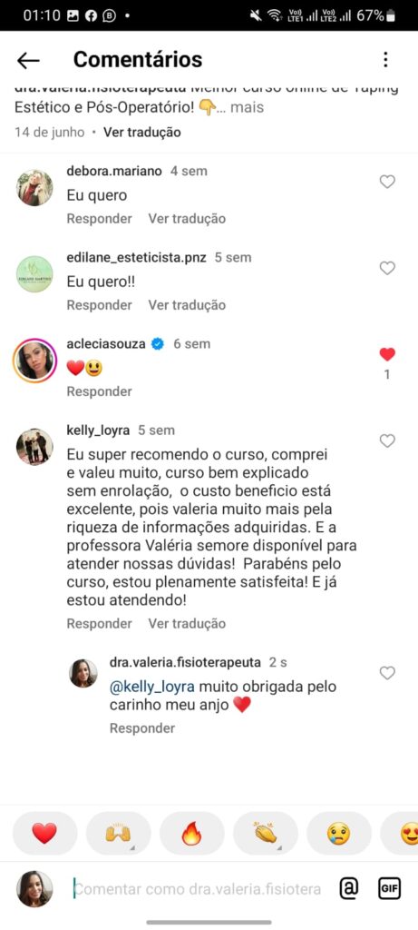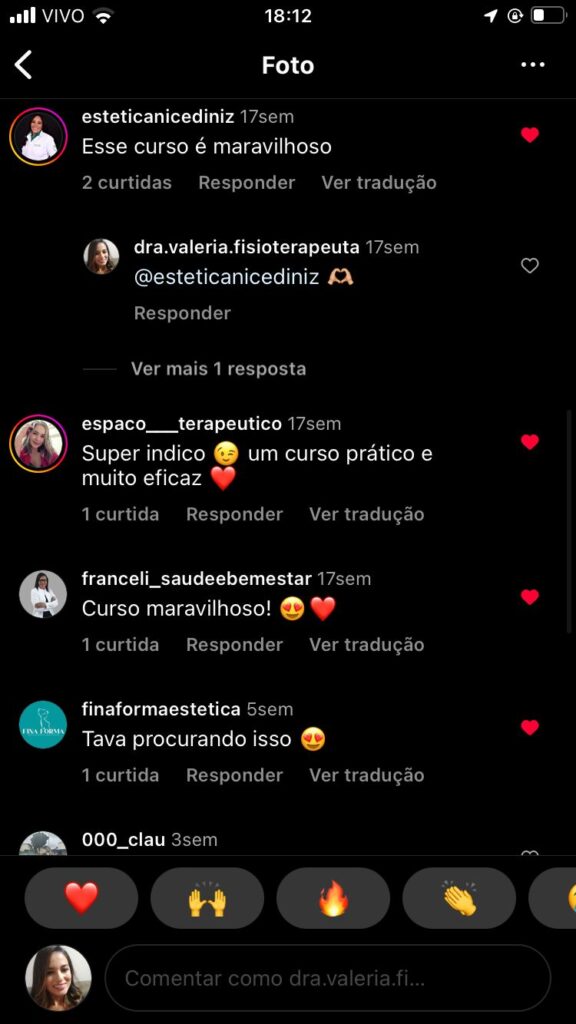 Vários de meus alunos que comentaram no Instagram sobre a eficácia, praticidade e qualidade do curso.